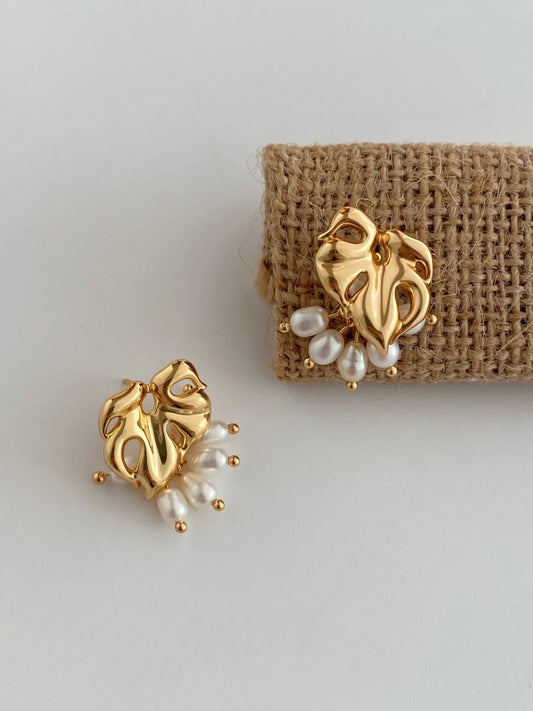 SAVE 25%Golden Petal Drop Pearl Earrings