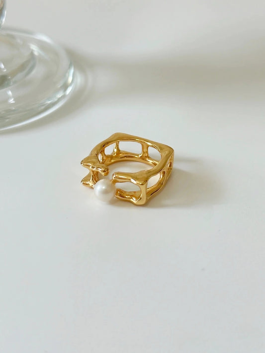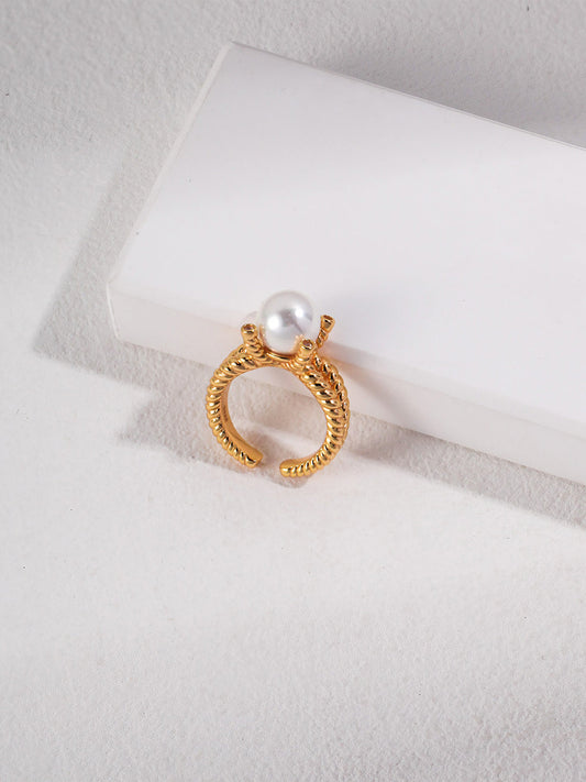 Golden Clasp Pearl Ring